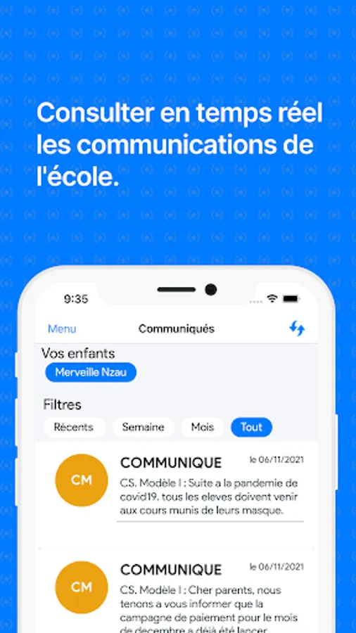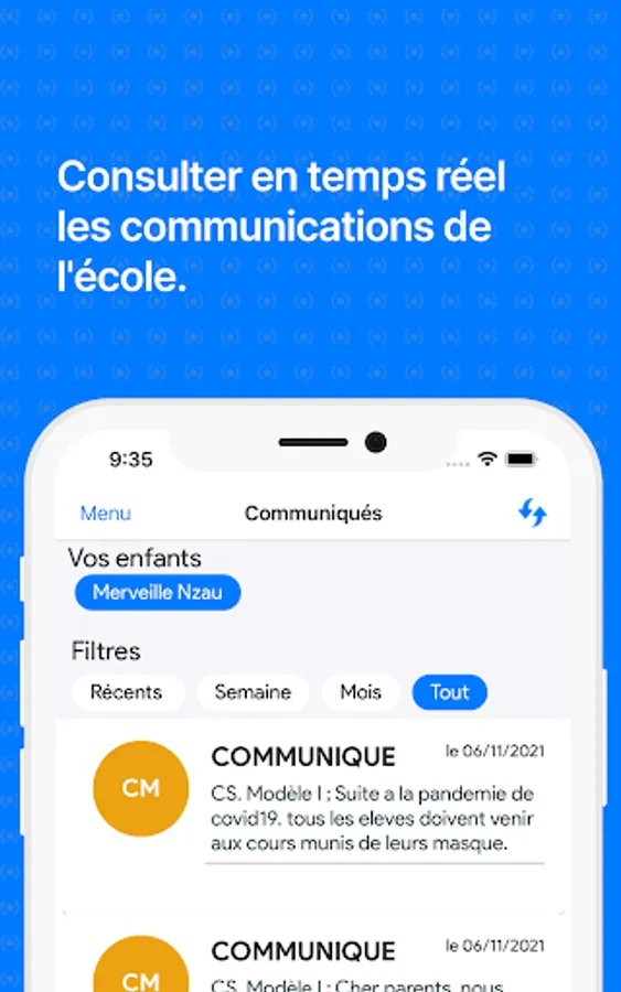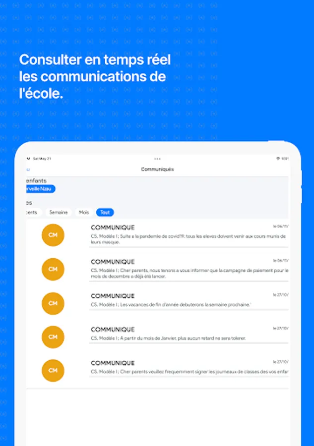 • NaPoche consolidates all communications sent by the school via the Eteyelo system.