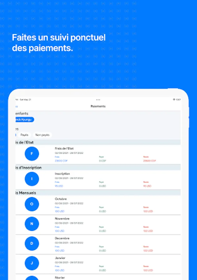• Tracking school fee payments has never been easier.