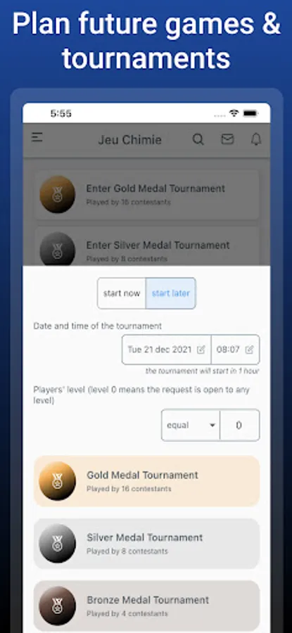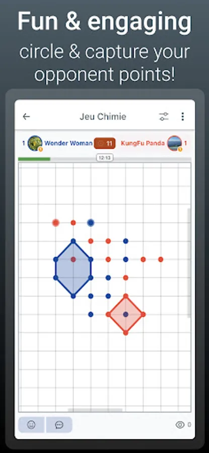 Jeu Chimie is played by two contestants who alternatively place points on the empty spots of the game's grid (by double-tapping the grid).