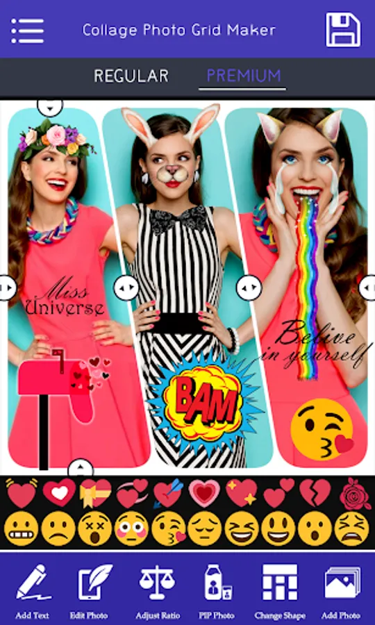 Photo Collage Editor is a great collage maker and photo editing app that lets you create and edit photos with funny filters, effects, stickers and emojis.