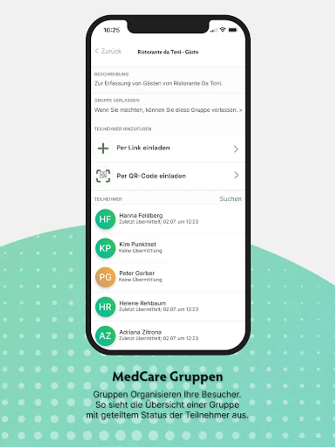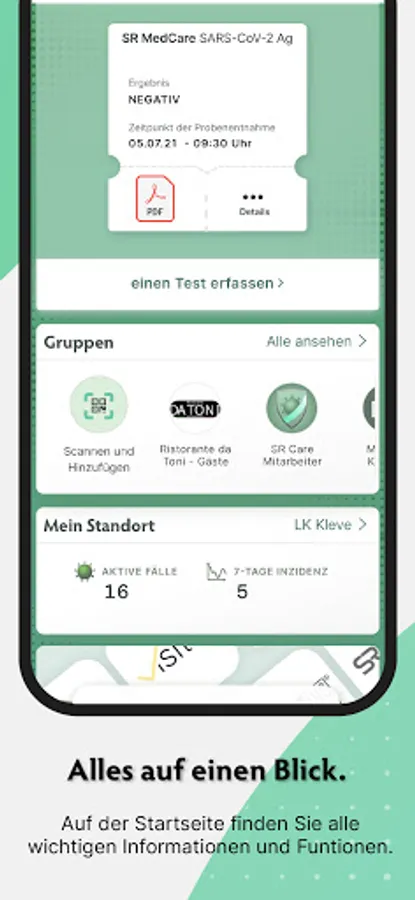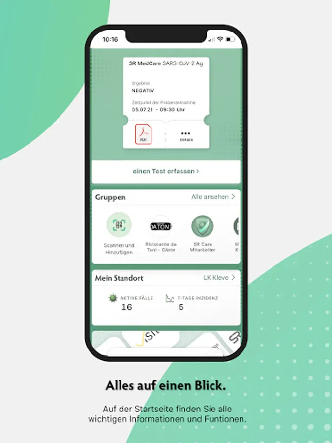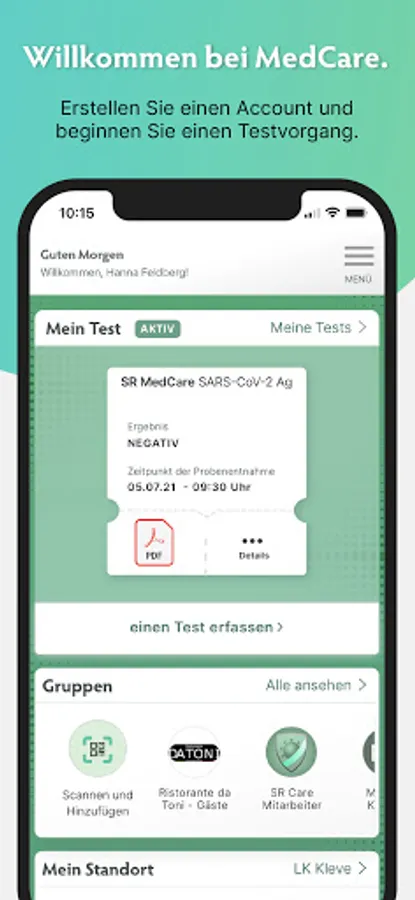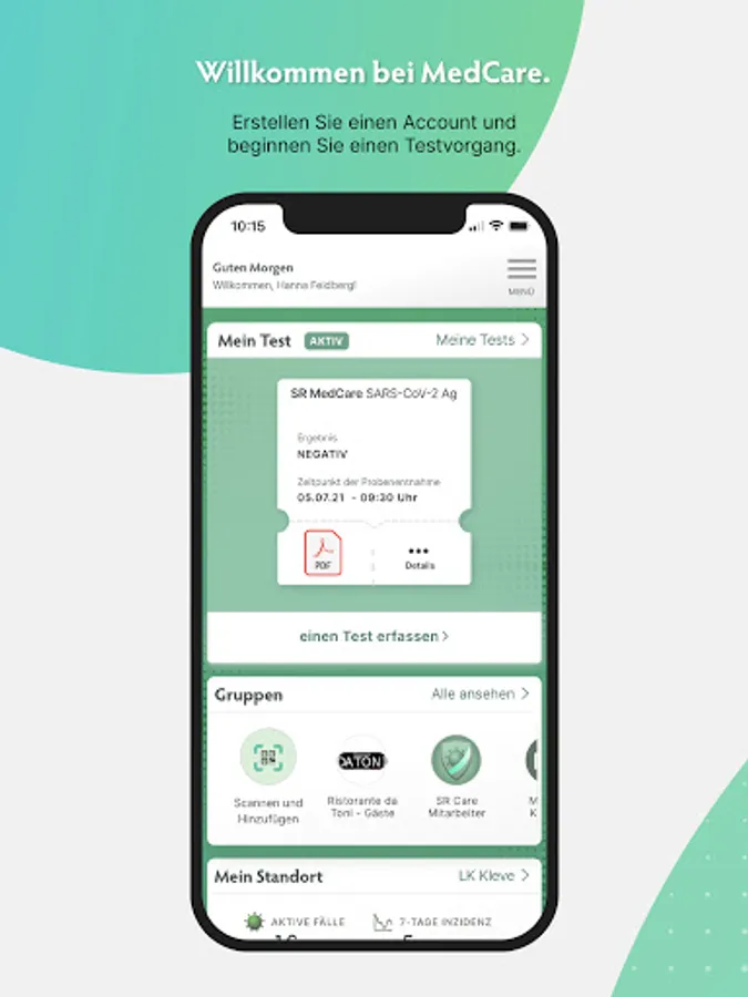 With the MedCare App you can easily and safely prove your health status. Test yourself at home and record rapid tests. Join a group to share your status. When entering events, restaurants, shopping centers or the shop around the corner: simply scan the code at the entrance or join a group, prove your status anonymously and enter. Back to life with MedCare.