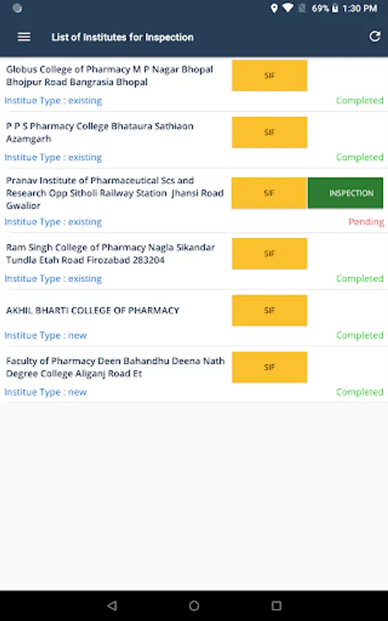 This application is used to inspect the institutes under the Pharmacy Council of India(PCI)