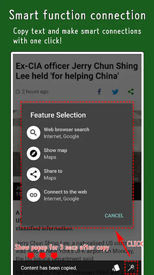 - After copying the content, you can connect it directly to the smart function with the contents copied to the clipboard.