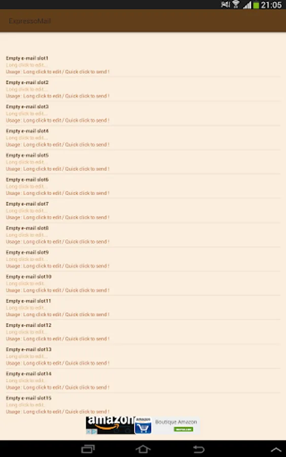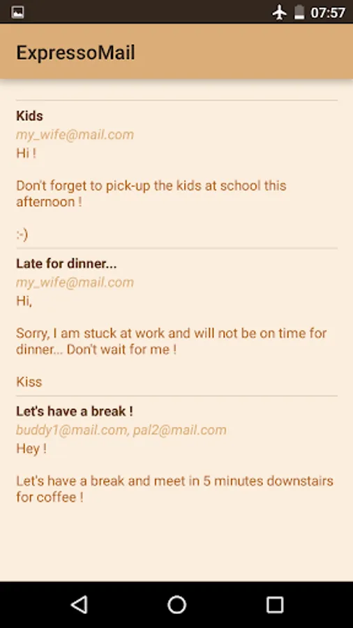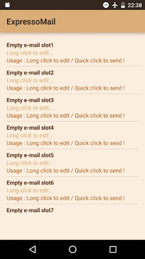 ExpressoMail is a set of 15 email slots which can be edited in order to store emails that you often have to send.