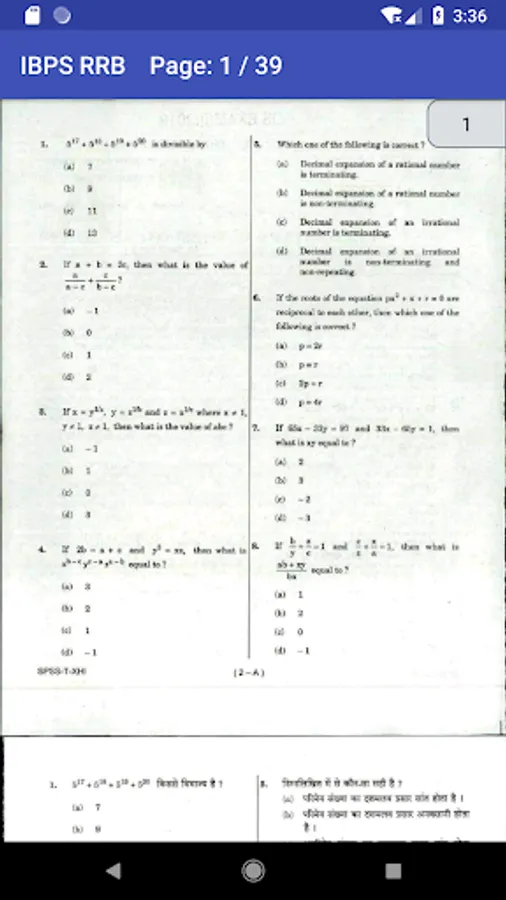 Mathematics Question Paper 1 & 2 Both of year 2019 -2006