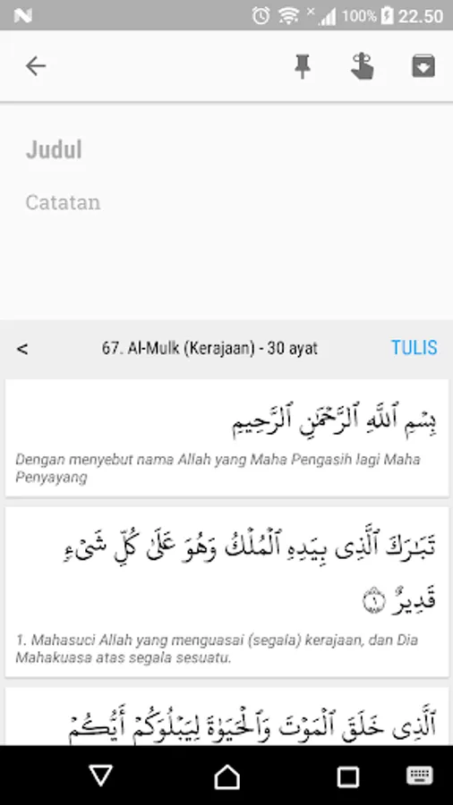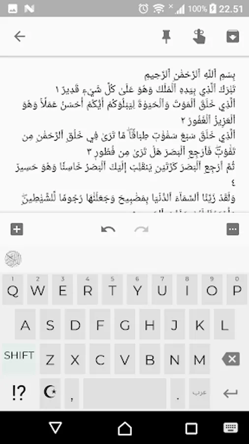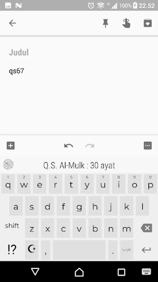 A keyboard designed to read and insert ayah of Al-Qur'an