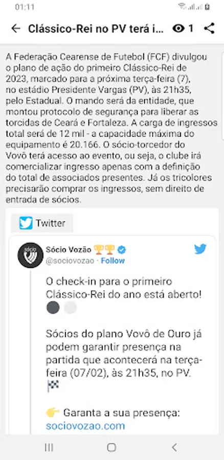 In summary, Ceará Info is the perfect application for Ceará fans. With up-to-date information, real-time games, exclusive videos, complete squad and standings in the championships in which the club is participating, the app offers everything fans need to follow Ceará with passion and dedication.