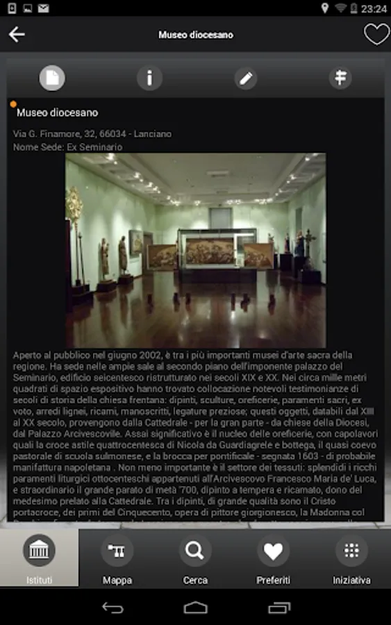 AICE APP offers search functions, localization and information sheets on cultural institutions, complete with description, service offering contact details and other contact information.