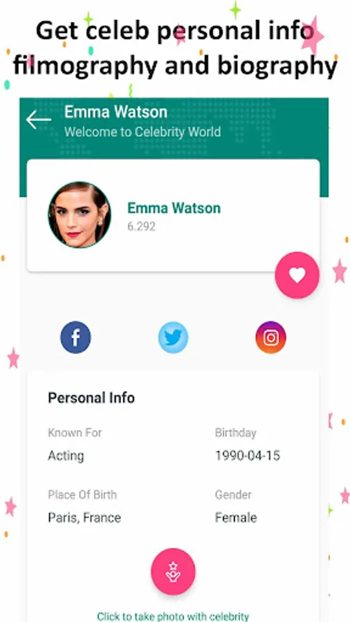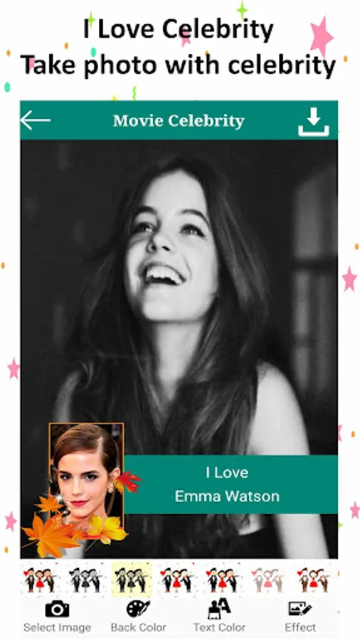 3.In Detail Screen Click On Pink Celeb button to edit your image with your favorite celebs.