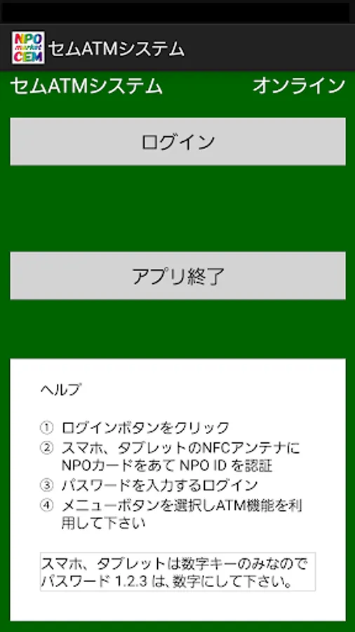 セム口座にログイン、電子マネーのネットバンキングとNPOカードが財布カード