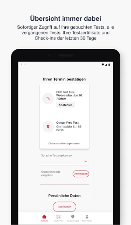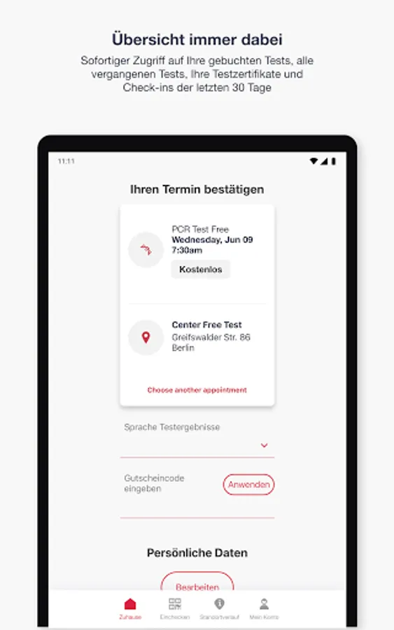 - Overview of available time slots for booking an appointment in the test centers and pharmacies;