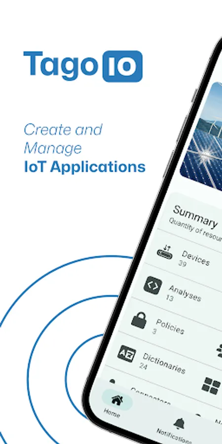 Using our mobile app, you can effortlessly manage all your TagoIO applications with your Android mobile app. It allows you to monitor and control your services and resources for all your profiles. Receive real-time notifications and alerts on your smartphone, staying informed about all activities.