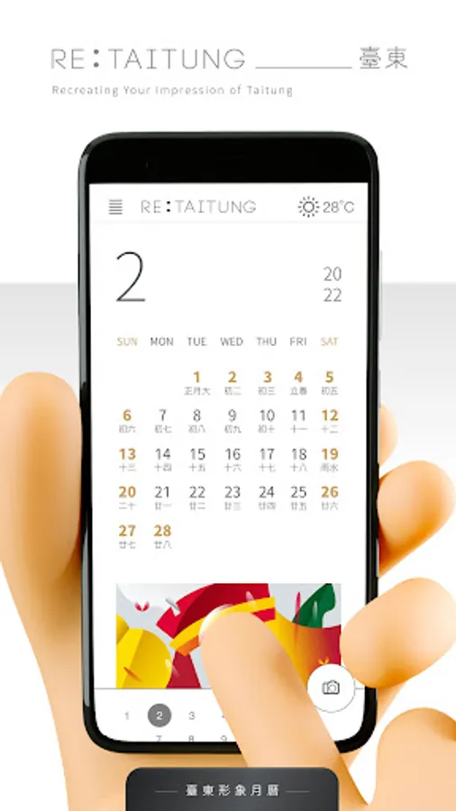 The Taitung image calendar has the theme of "Re:Taitung _________ Taitung". The blank bottom line allows everyone to fill in their own description of Taitung. Re: has the meaning of reply, so that this calendar can be used as an invitation letter , Warmly invite everyone to come to Taitung to experience Taitung’s unique slow culture.
