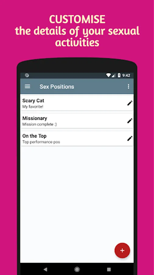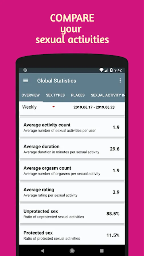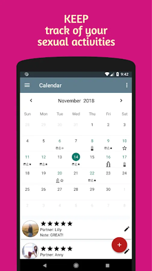 This se*x tracker app lets you track se*xual activities, se*x life, se*xual health, se*xual intimacy and gives you se*x statistics about your private life for better se*xual wellness.