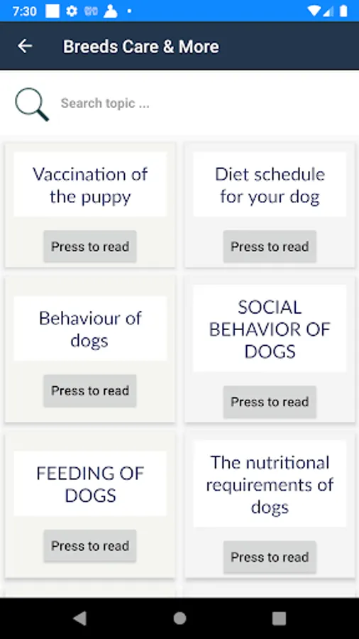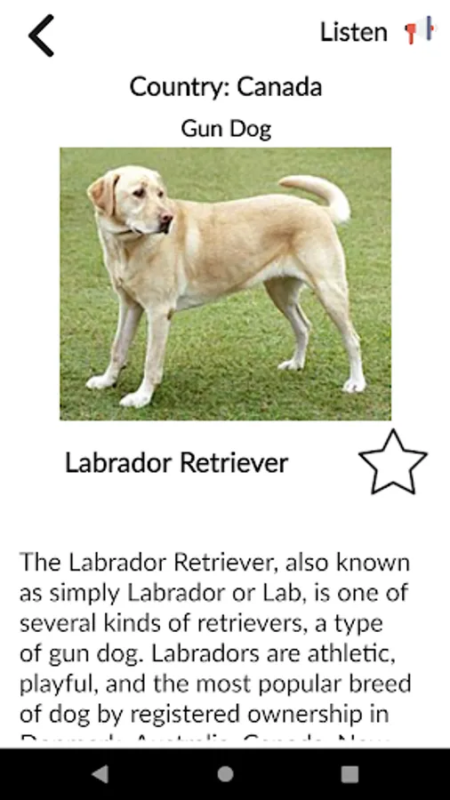 * More than 600+ Plus breeds of the world are covered. You can directly search through it and know more about that particular breed. A pictorial description is covered. You can add breed to favorite list to access it quickly.