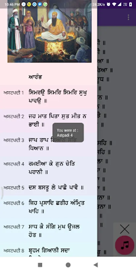 By the grace of almighty Guru: Sri Guru Arjun Dev Sahib Ji, this app let's my honorable users to easily read, listen, switch to specific Astpadi & bookmark your last read position.