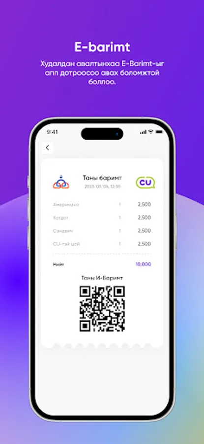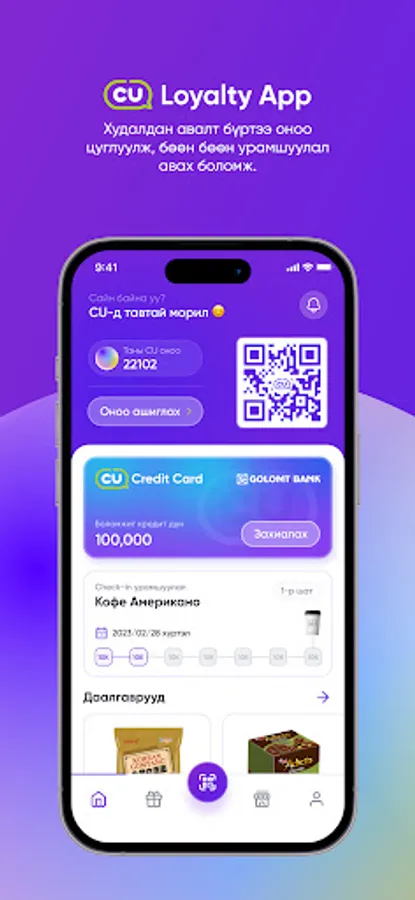Collect loyalty points and enjoy various discounts and promotions using the CU Mongolia application every time you use it. CU has a 24-hour convocation chain store with the largest number of branches in Mongolia. With this application, you can easily find new industry information, search for the nearest branch, and receive new product promotions in real-time.