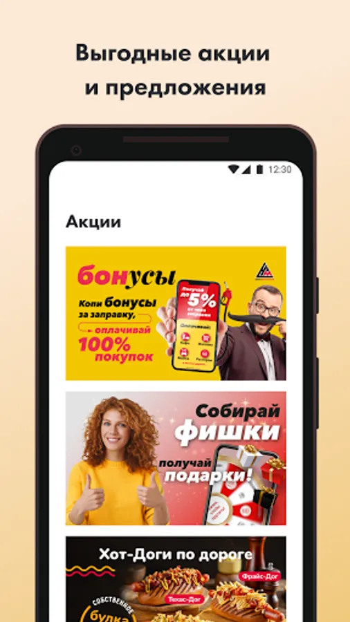 - Accumulate bonuses for refueling and pay for the purchase bonuses in cafes and shops at gas stations;