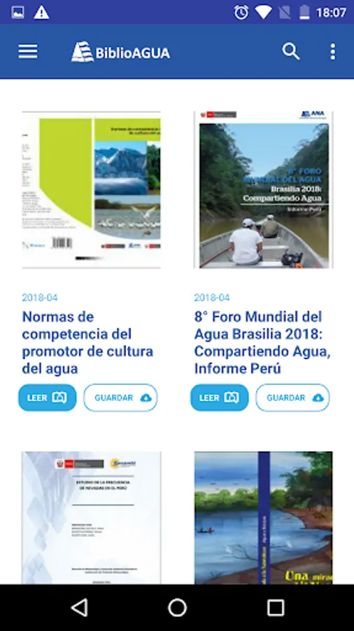 The Government of Peru, through the Ministry of Agriculture and Irrigation, makes the "BiblioAGUA" application available to the public, which allows any user to consult online and download, in a simple and free way, through any mobile device. diverse information contained in the Digital Repository of the National Water Authority (ANA), which includes digital publications related to water resources and related topics, coming from technical, bibliographic and cartographic documents, thus contributing to its dissemination.