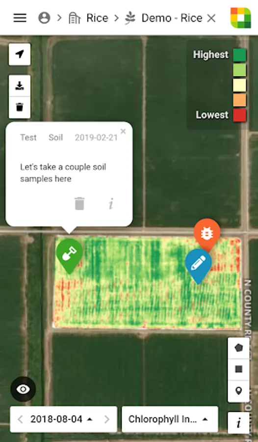 - Compare imagery of your fields over time