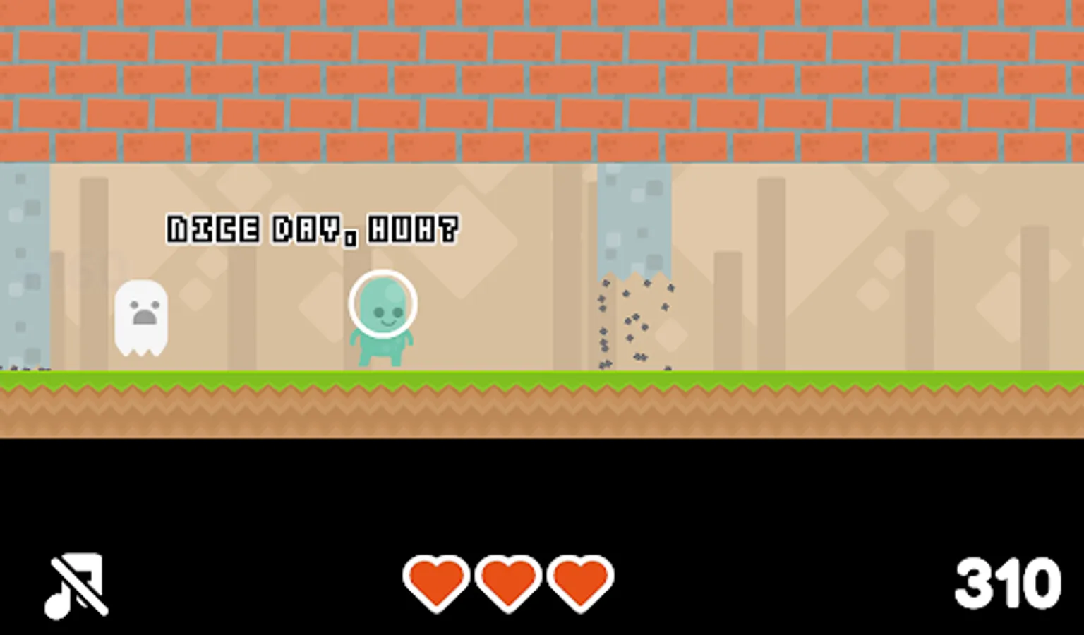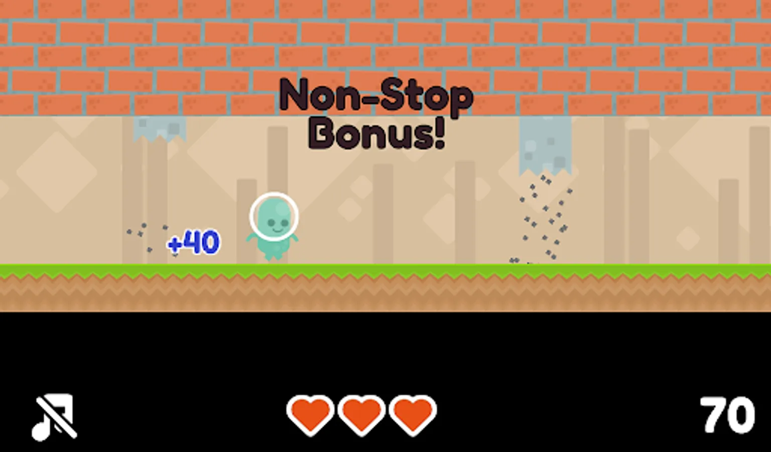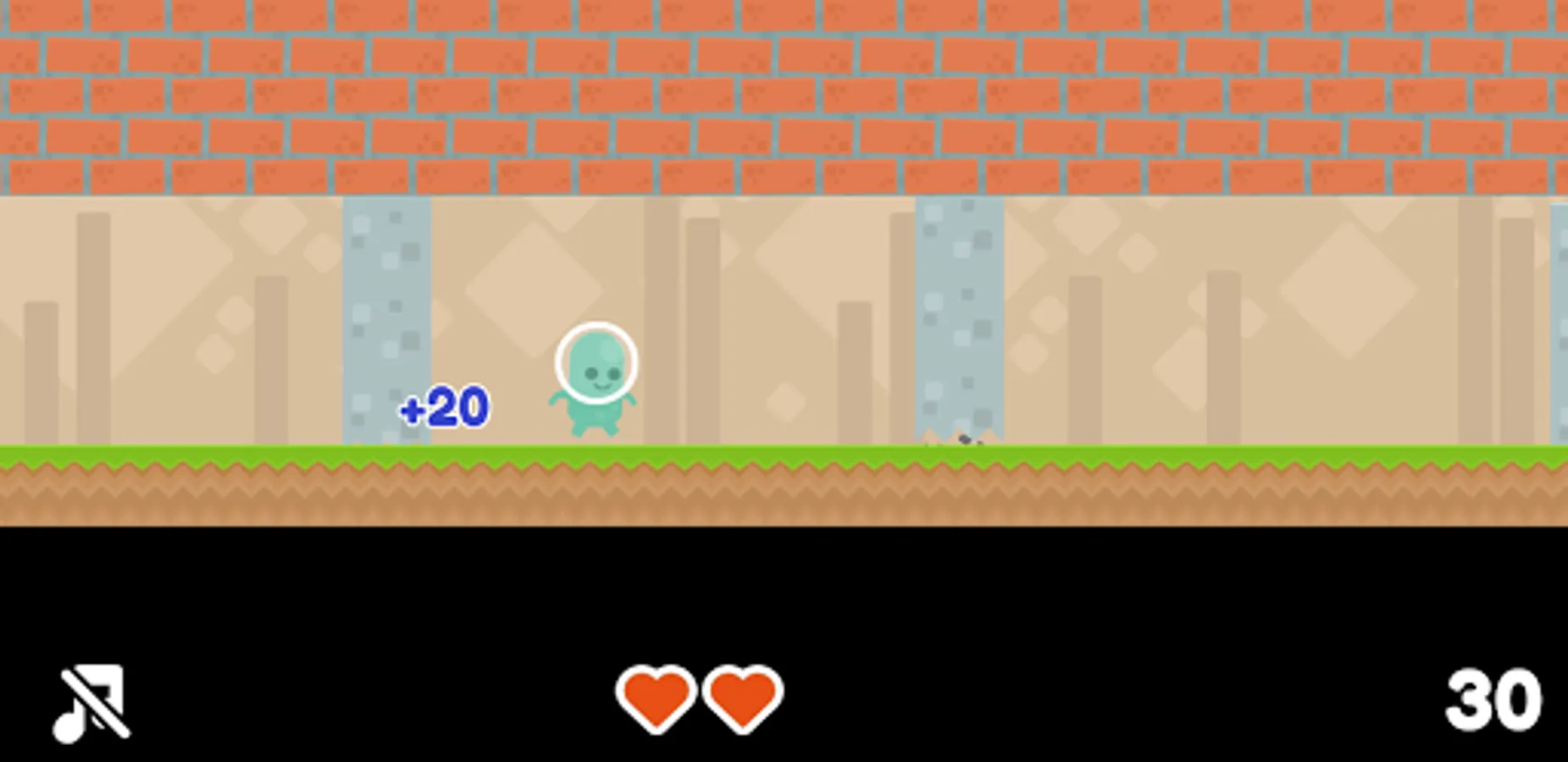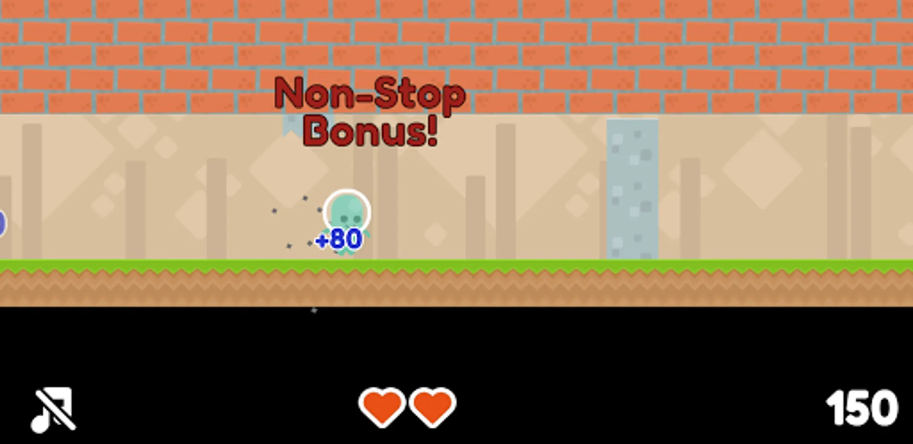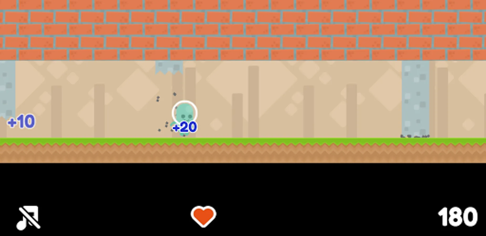 Avoid running into stamping columns while escaping a ghost. Get bonus score from running past more columns without stopping. See how far you can get. You will have to time your stops carefully and react quickly to avoid being hit - or caught!