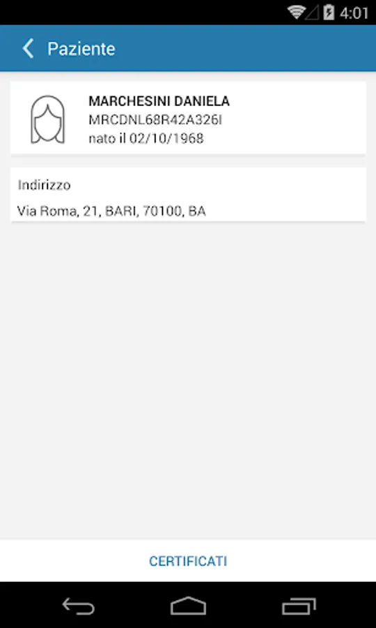 Also, always having at hand the entire archive patient, you have the possibility to access additional information for each patient as exemptions for income or active display of address, so to display on the map the best route to navigate home.