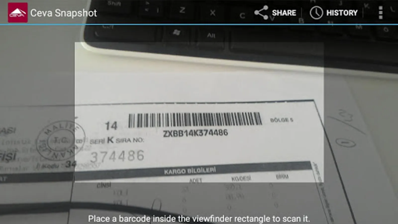 Ceva Türkiye Snapshot application. This application can archive your images of the barcode. You can view and download the pictures you have added to the system.