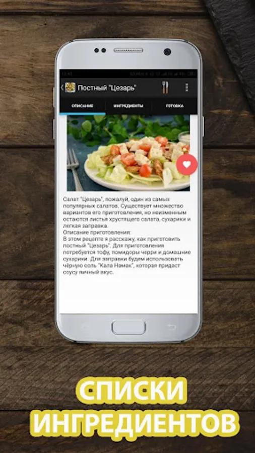 Our project has selected only those recipes that are easy to prepare and enjoy gastronomic pleasure. The application includes many selected recipes for cooking: Caesar with pork, Caesar salad with tomatoes, Caesar salad with cherry, Caesar salad (perfect). All recipes are described step by step, equipped with photo examples, some even with different serving options. Our creative team is constantly trying to improve the quality and modernization of our collection, so your ratings and comments are extremely important to improve the quality and user convenience. All descriptions of cooking and dishes are presented in Russian. As a whole team, we constantly test recipes from different Internet to add to our application only proven and noteworthy recipes. We are also constantly in contact with our users and various chefs who send us their comments and recommendations.