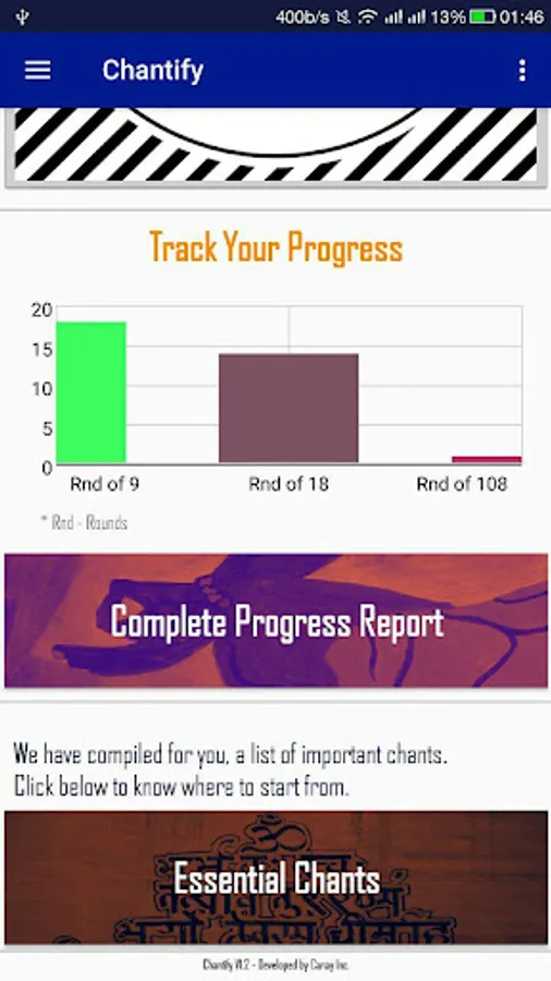 > Detailed 'Progress Report' and graphical depiction for you to keep an account of your chants (And feel proud, yeah?).