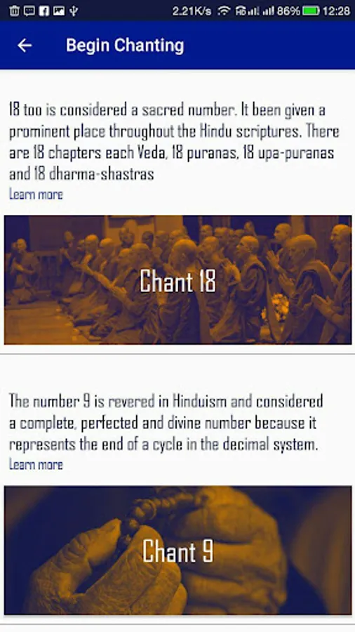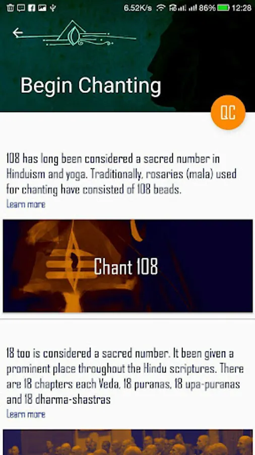 > Options for chanting 108 ,18, 9 times and Quick (Continuous) Chanting.