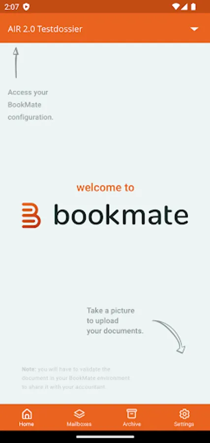 The BookMate App expects both you as an end user and your Accountant to be registered users of BookMate. No BookMate account yet? No worries, it's free! The registration process starts with your accountant, do not hesitate to talk to him about this! www.bookmate.be.