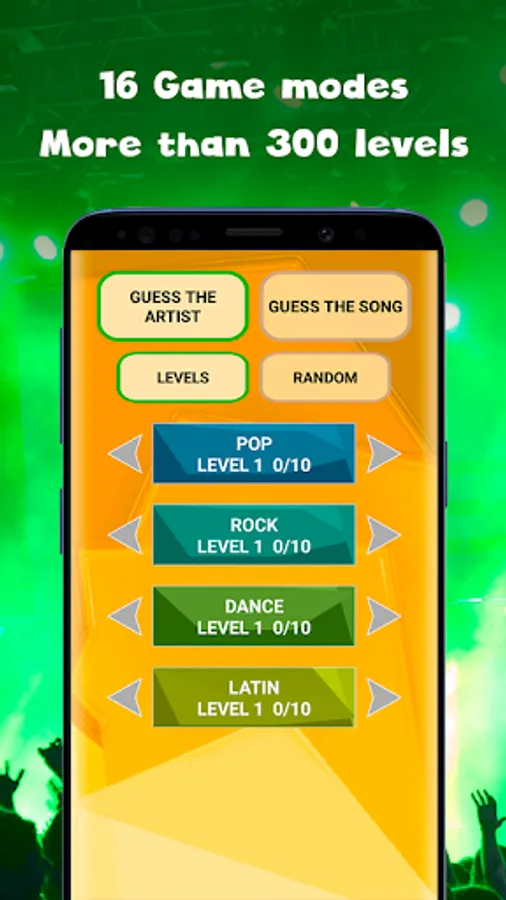 Enjoy the 4 musical styles of this free music game: POP, ROCK, DANCE and LATIN.