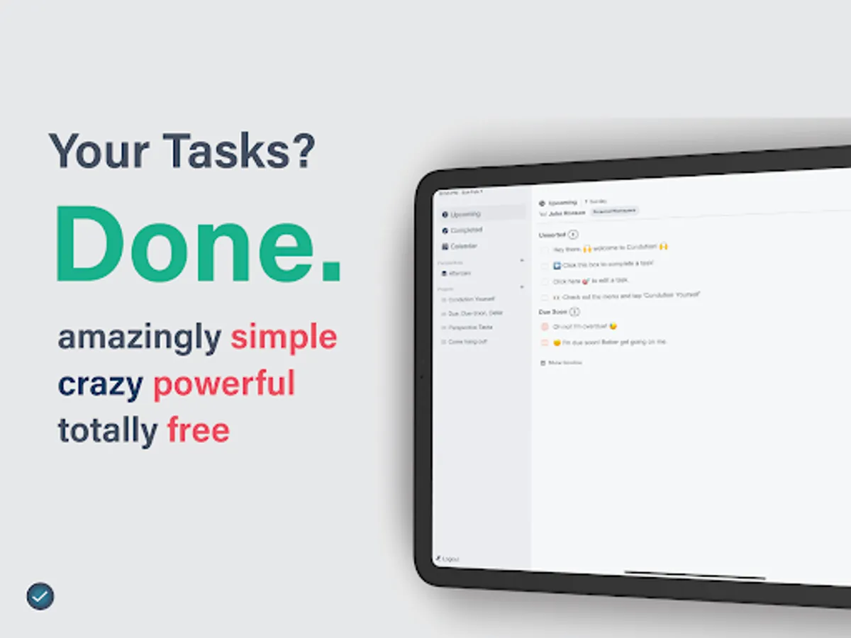 Create tasks, manage them in projects, add some tags, set due dates, and repeat them at will. Condution has the whole nine-yards of the core list-making features nailed so you could create and edit anything from grocery lists to hundred-task projects.