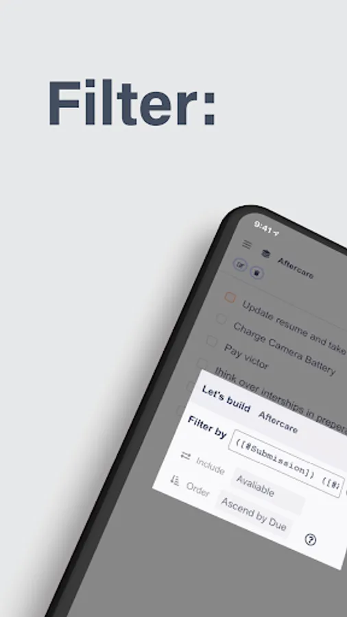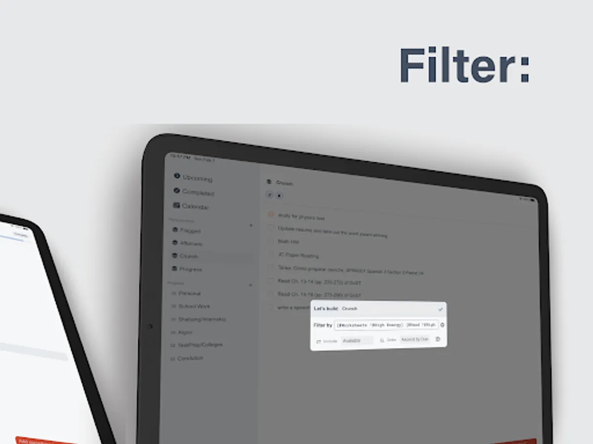 Filter tasks by tag? Check. Filter by projects? Check. Filter by due date? Check. Filter by due date and project with tags and sort tasks based on defer date while hiding everything that's not available? You bet.