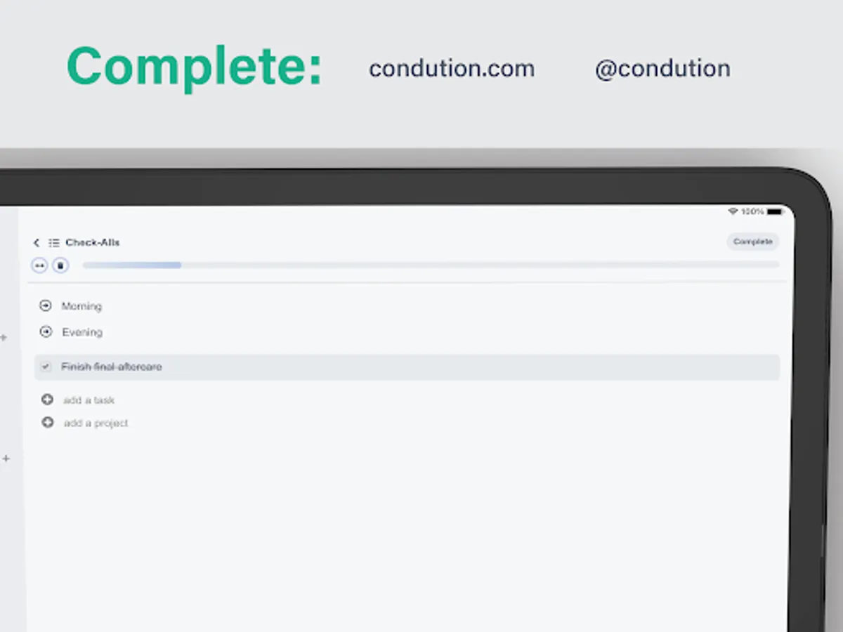 Condution is a powerful yet incredibly simple check-list application that supports your needs from study, to business, and to life. Bring Condution with you across the globe and let it be your second brain — so you can focus on living your best life.