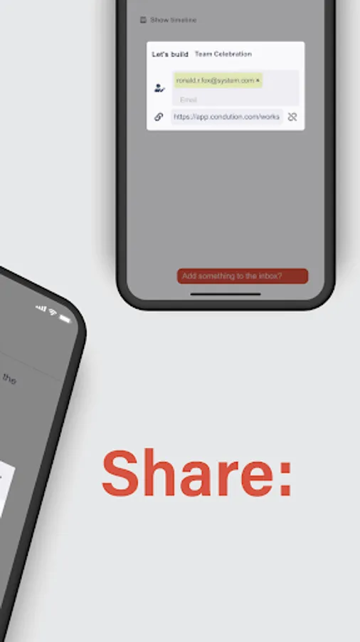 create and share "workspaces" by tapping on the "personal workspace" badge found on the upcoming view. These workspaces are collaborative Condution views in which everyone — regardless if they have an account — could collaborate on Condution!
