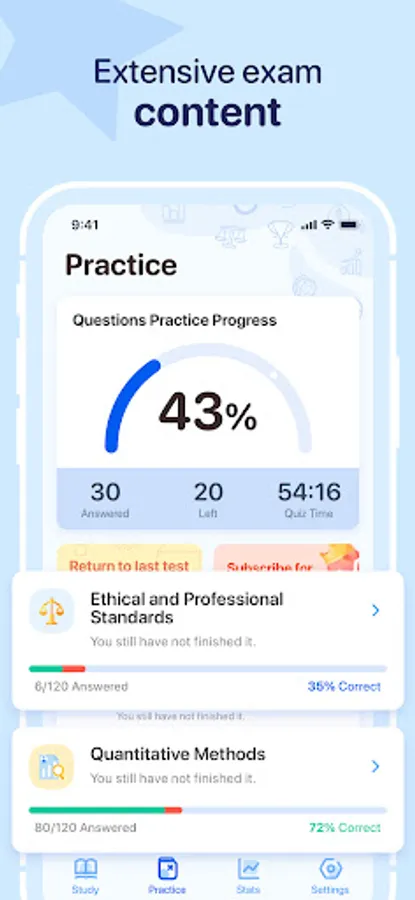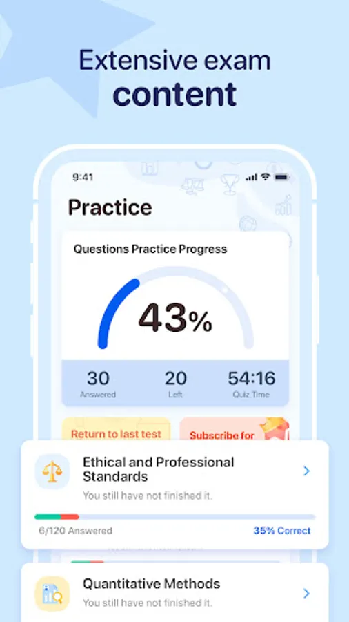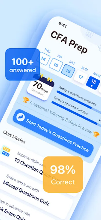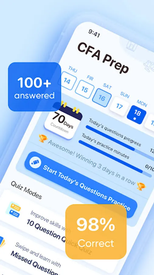 CFA Test Prep 2023 is an exam preparation app that will help you pass the Chartered Financial Analyst (CFA) certification exam administered by the CFA Institute with a high score on your first attempt!