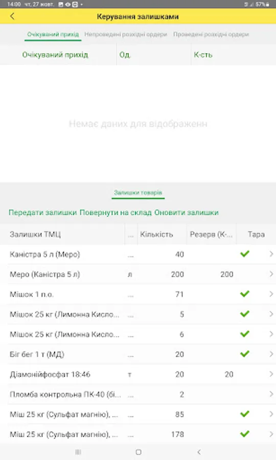 - Acceptance and transfer of goods from the warehouse to the agronomist or transfers between agronomists;