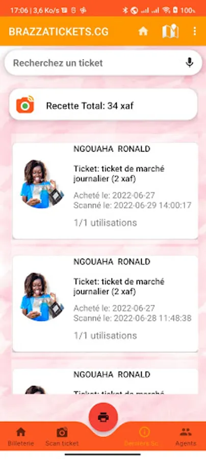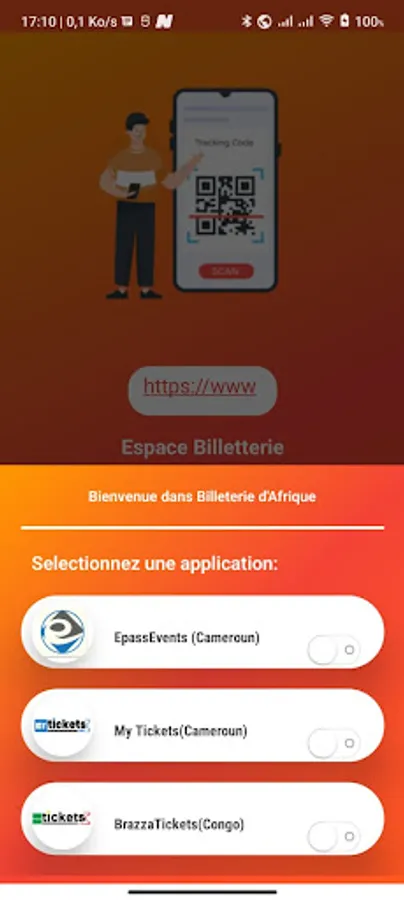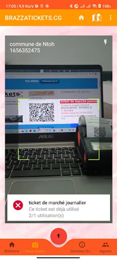 Cette application permet de scanner les tickets achetés sur brazzatickets.cg, epassevents.cm, mytickets.cm