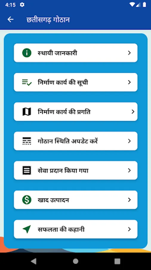 Garuva App has been developed by Government of Chhattisgarh to manage gothan progress and work information and other activities running in the gothan. The app has following main sections of gothan :