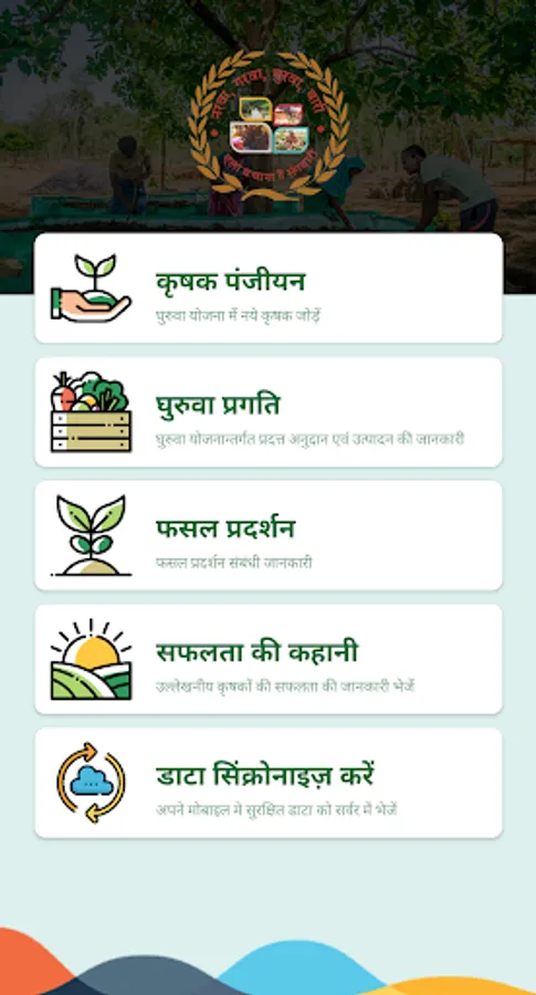 Ghuruva (घुरूवा) progress application is developed for RAEO (Rural Agriculture Extension Officers) to keep track of village wise sanctioned Ghuruva (घुरूवा). Along with new farmer registerations RAEO's can manage following things from this application: