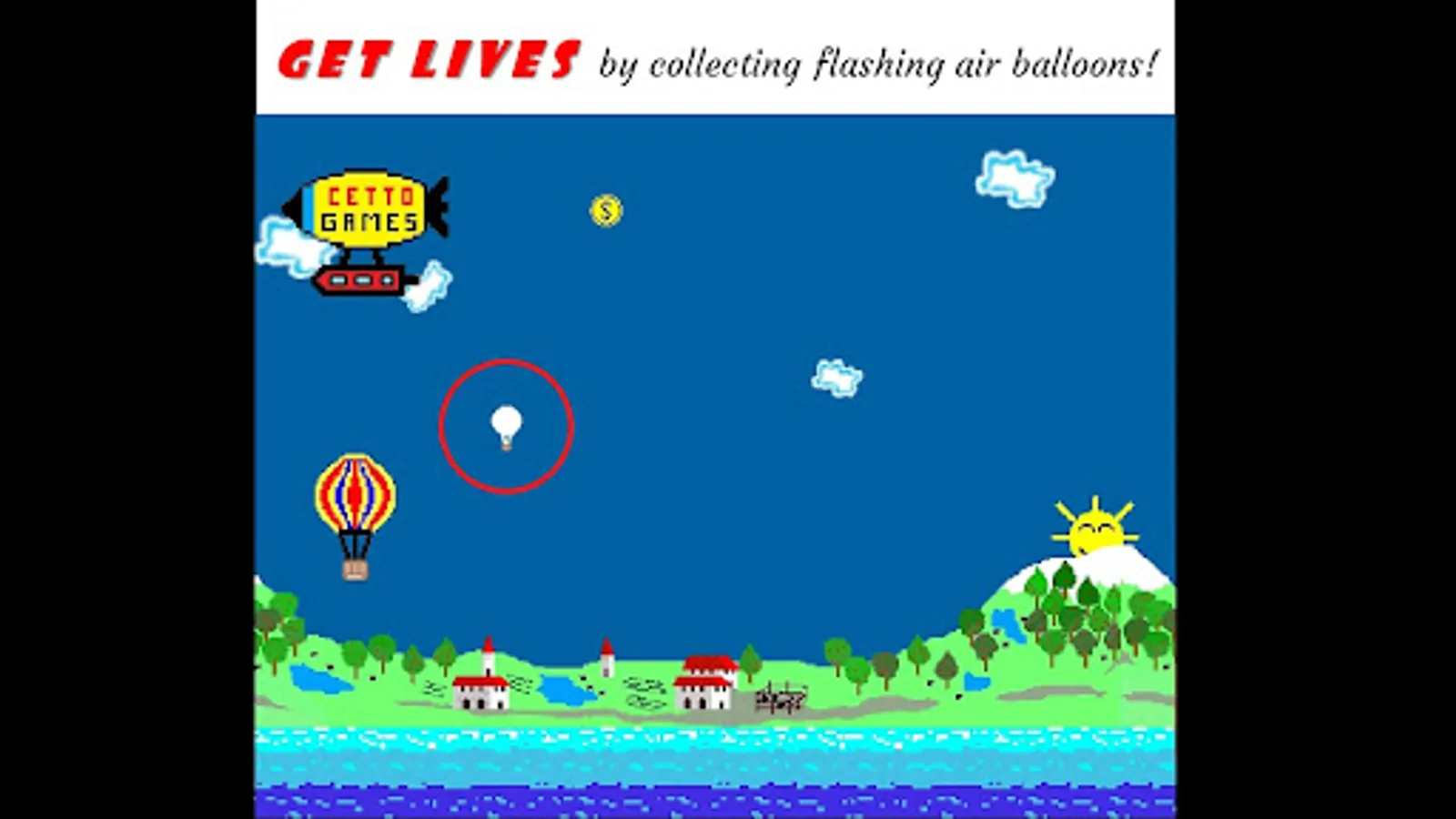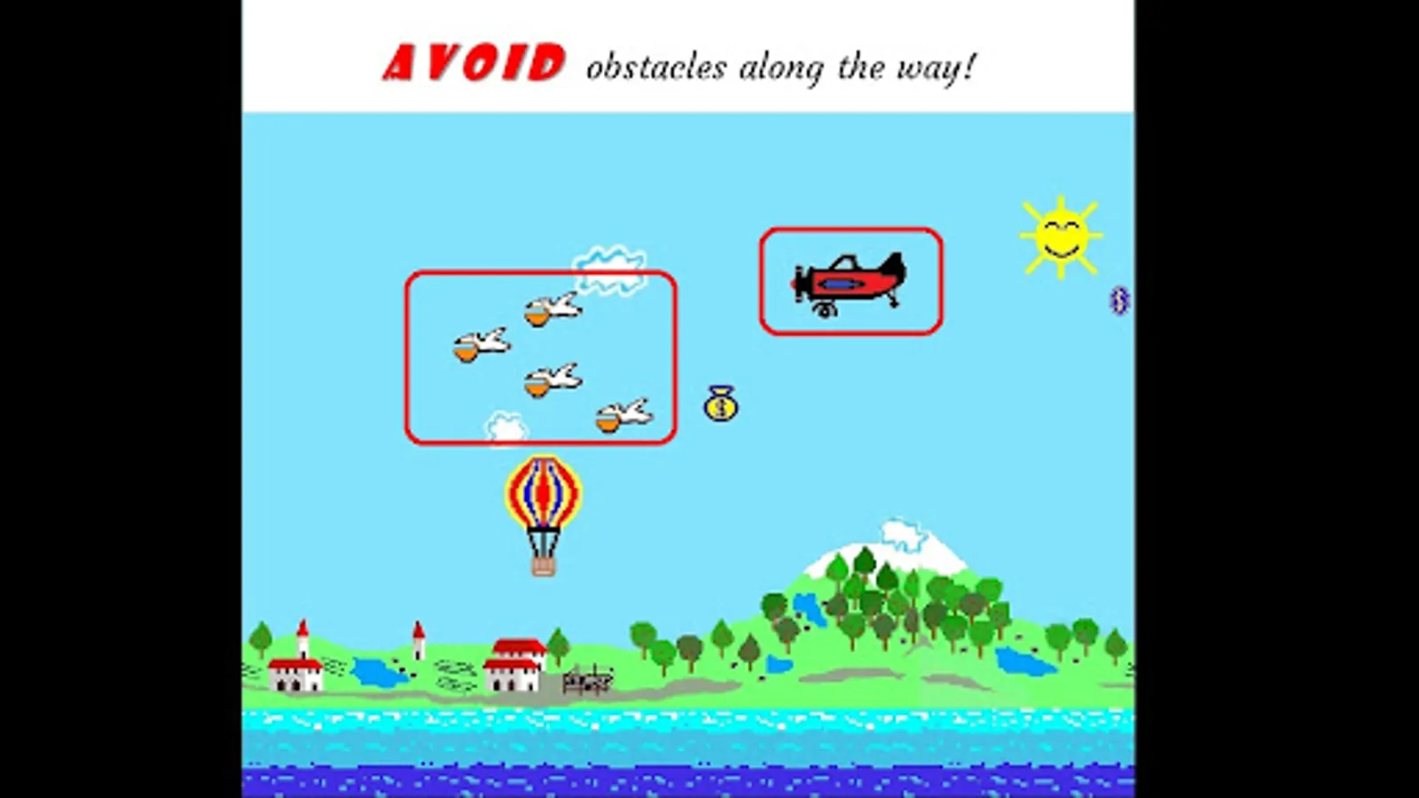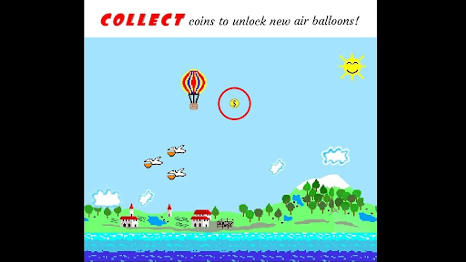 Fly with the air balloon over the sea to go further and further!