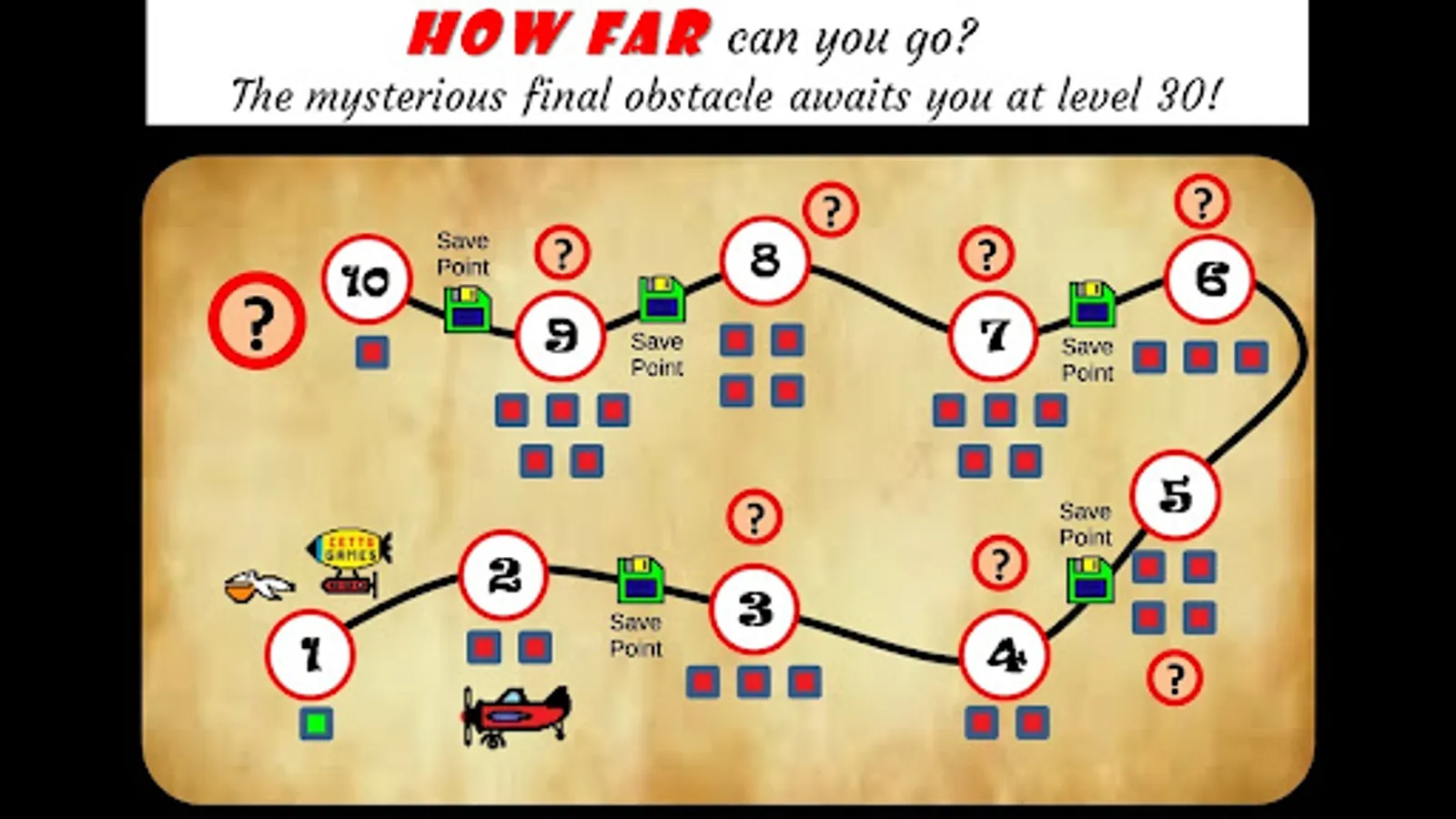 - Overcome 10 zones for a total of 30 levels!