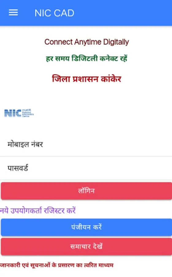 NIC CAD provides the ability to create a database of District Officers and Citizens and allows them to connect at any time, official’s registration done by the Authorized Administrator and Citizen registered in this application with their mobile.