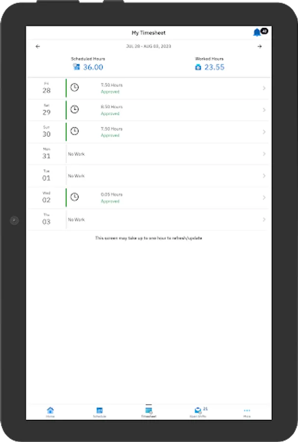 Compass Time is a time and attendance application that helps locations track employee hours. Employees may clock in and out, track overtime, and monitor paid time off.