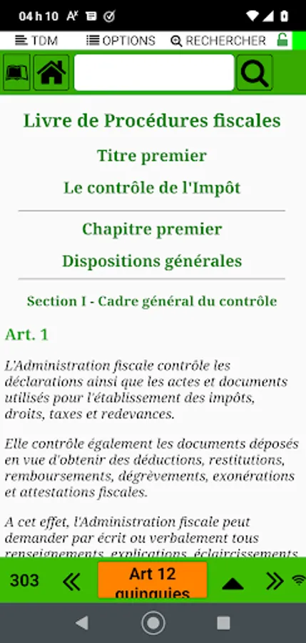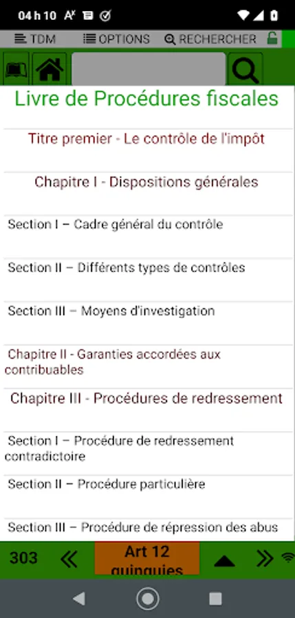 The browser allows each article to be displayed clearly and clearly, in its context (Book, Part, Title, Chapter, Section, Sub-section, Paragraph, Sub-paragraph) In addition, all references to other articles of the Code or of the Procedure book are highlighted and displayed on simple click.