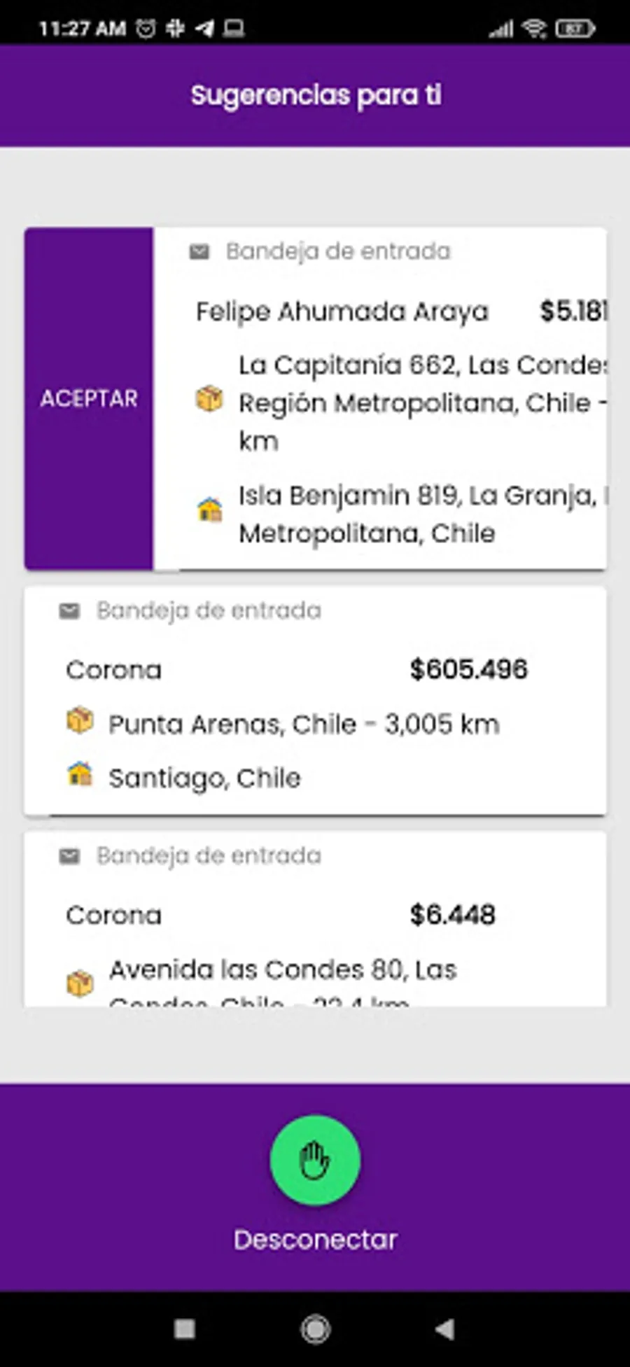 Application that facilitates logistics between local businesses and end customers. This particular application is for Collaborators, they are in charge of looking for products, suitcases or correspondence. Where indicated by an Associate, for later the Collaborator delivers the product.