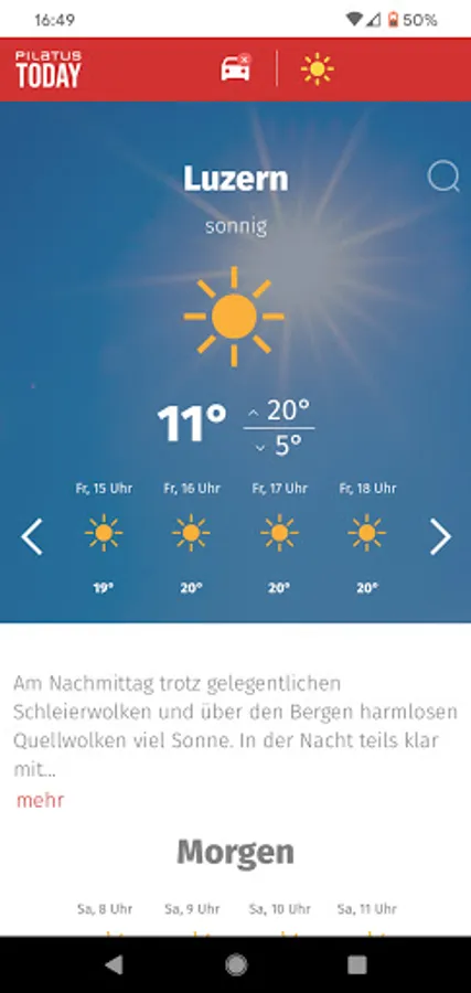 With the PilatusToday News app you have Central Switzerland in your pocket. The convergent newsroom serves you around the clock with news, services and entertainment from your region. So you are always well informed, well entertained and enjoy the latest traffic service and weather forecasts from Central Switzerland. With PilatusToday you will not miss any topic that Central Switzerland is talking about. Our reporters are up close in Lucerne, Nid- and Obwalden, Schwyz, Uri and Zug. They also provide you with the most important news from Switzerland and the world.