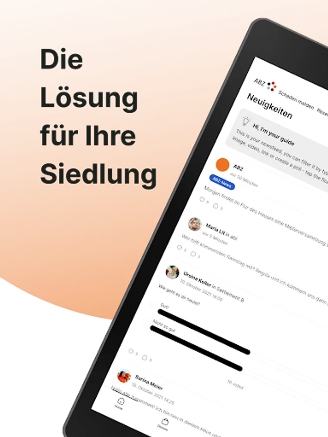 The ABZ Wink app is the communication and service platform for all residents and members of the Allgemeine Baugenossenschaft Zürich.