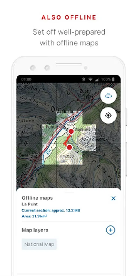 Use the famous national maps to discover even the most remote places in Switzerland and topics such as hiking, cycling, snow sports and aviation. All functions and data of the app as well as offline use are free of charge. The app is free of advertising and does not require a login.
